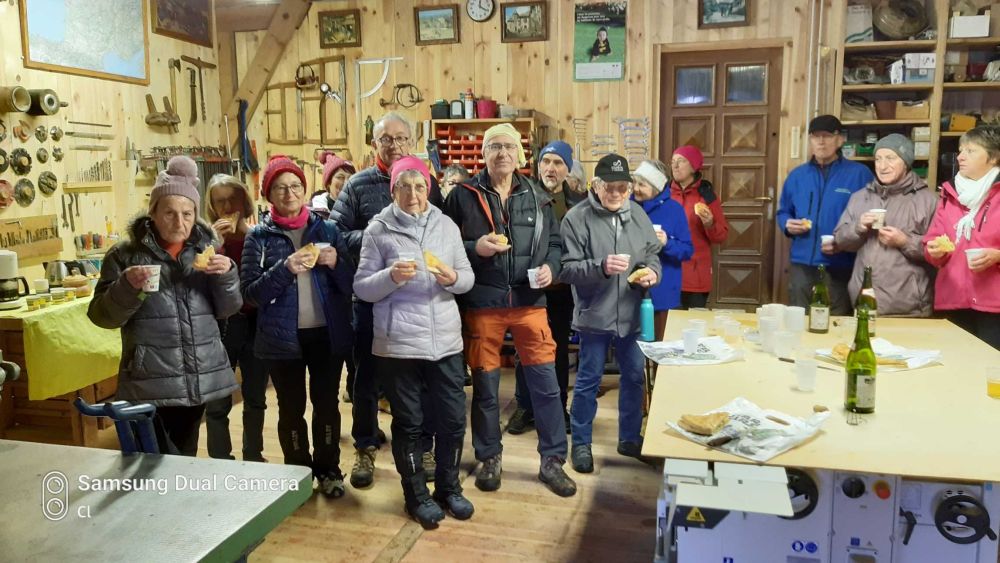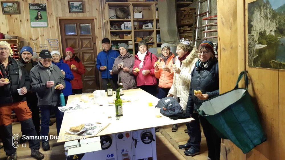 Rando du lundi 15 janvier animée par Georges autour de Lesperon.  8 km pout 200 m dénivelée.  . Belle rando sur des chemins parfois enneigés mais il fallait bien ça pour apprécier la galette prise à l'abri dans l'atelier de Georges