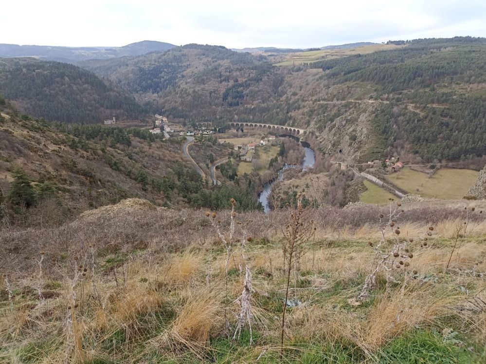 Très beau panorama sur la vallée de l'Allier et le viaduc de Chapeauroux.