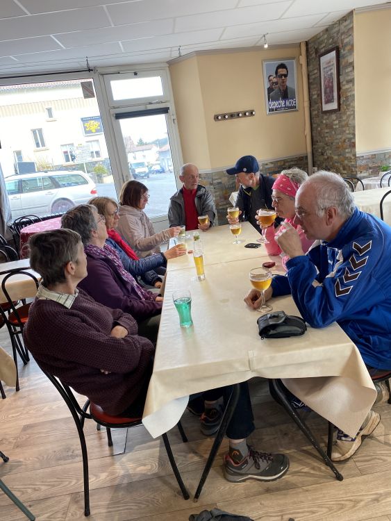 Cette belle randonnée effectuée sous un ciel à éclaircies le matin, accompagnée par le chant puissant et mélodieux des alouettes, et nuageux l’après midi, se termine par un moment convivial au café de la Bascule à Landos... pour les 9 randonneurs qui ont ainsi parcouru les 18 km prévus avec 400 m  de dénivelé !