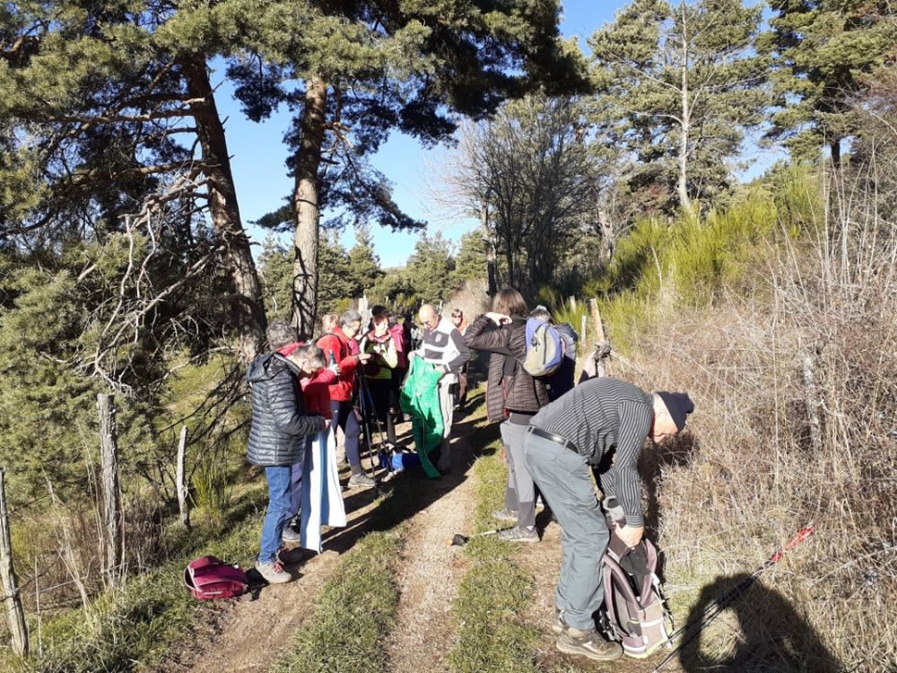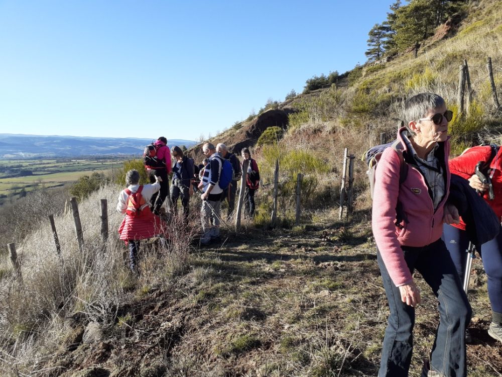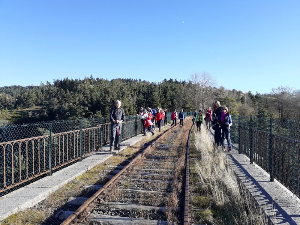 20 personnes ont fait ou refait cette rando du côté d'Arquejol , son viaduc, sa carrière de pouzzolane et sa grotte où un ermite aurait vécu au début du siècle passé.