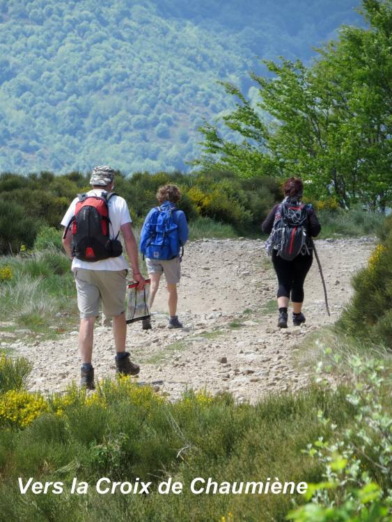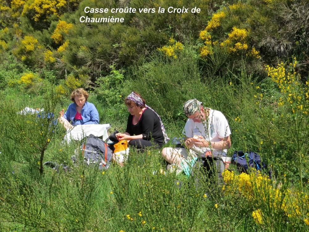 Aujourd’hui nous n’étions que quatre participants pour cette belle Rando. Passage à la croix de Chaumiène (1284 m) et à quelques mètres de ruines du village de Chaumiène.